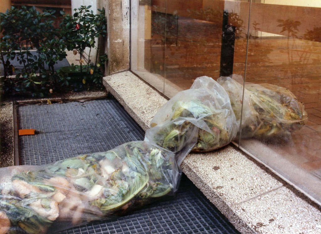 Les primeres manifestacions plàstiques de Lluís Vilà comencen als anys setanta amb un art efímer i fungible, atacant la provisionalitat de tot el que ens envolta. En aquests montatges artifàgics, el menjar adopta un caràcter escultòric, fugint de la recerca purament estàtica per introduir-se en la profanació de l’objecte comestible. Sabates recobertes amb elements menjables (“Sabates comestibles”, Metropol, Barcelona 1982); la instal.lació construïda a base de revestir un espai amb fulles de col(“Collage”, pati de la Casa de Cultura de Girona, 1983); els personatges i muntatges construïts a base de manipulació i ensamblatges d’una gran varietat de pans(“Entrepà enlluït”, Espai 10 de la Fundació Miró, 1984); l’estat degradant de les triadures embotides en una fletxa de plàstic (“De laberint” pati de la Fundació Miró, 1984- instal.lació que fou retirada pels organitzadors a causa del malestar que va provocar-); la referència indirecta als cicles vitals que desencadena la naturalesa (acció “Arburguesa”, Banyoles, 1984); la instal.lació amb cols i verdures embutides en plàstics(“Canvi de pell”, façana de l’Ajuntament de Pamplona, 1985); la màquina fagocitadora de plats i culleres repicant (Sala Montcada, Barcelona, 1985); la sèrie inspirada en l’enllaunament com estètica del mercat(“Apologia contemporània de la Garrotxa”, Olot 1986), etc… o sia referències al menjar com a paradigma del consum, a partir dels quals manifesta una dura posició crítica de denúncia social, alhora que ofereix una visió irònica i caústica del món de l’objecte.Però, cal tenir en compte que el seu tractament del menjar no és el d’ofrena ritual ni el de cerimònia festiva com ho fa Miralda, per exemple, sinó que Vilà el descontextualitza de la seva funció habitual per transformar-lo en un objecte “kitsch”, per deixar-lo degradar fins a la putrefacció o, ja recentment, enmarcar-lo -una llesca de pa- sense manipular, per destacar la seva humil grandesa. Els ritus nutrici a les seves mans, docs, esdevè grotesc, instintiu i al.ludeix al factor desagradable i provocador del fet deglutible, tot ampliant les seves referències en un entorn diferent per enriquir el sentit de la imatge.